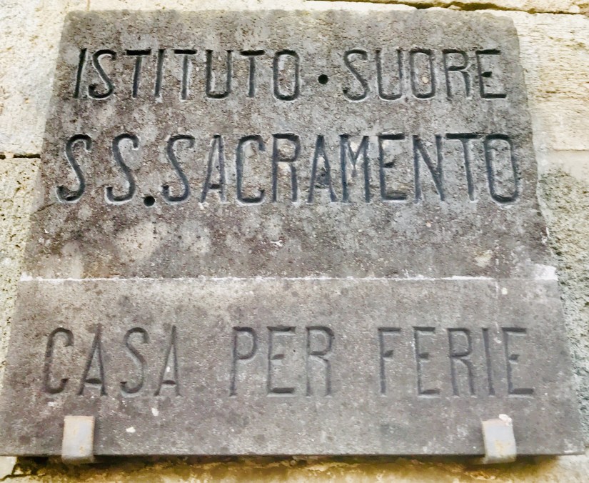 Accommodations: Suore Del Santissino Sacramento, Piazza Santa Cristina 4. Tel: 0761799058. Cost: Donation. Carla stayed here recently and said that there were 5 single beds in her room, with alcove. There are 17 single beds in our room, but only 2 other roommates (2 lovely French women who were at our same accommodations last night).