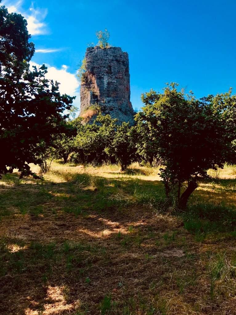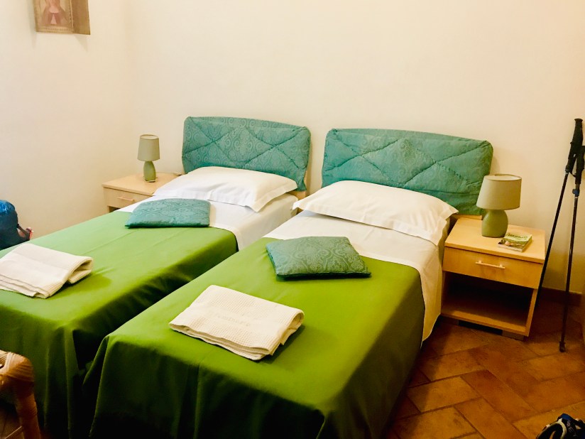 Out of our 18 days spent walking so far, today’s hike was unquestionably the most diverse and stunning. Majestic woods, a little church (as well as houses) made of tufa blocks, hazelnut plantations, Roman tombs, a medieval bell tower, the quaint village of Capranica, imposing town walls and a rather long and intense jungle-like trek…this walk had it all! If doing a single-day hike on the Via Francigena, this is one that I would highly recommend.