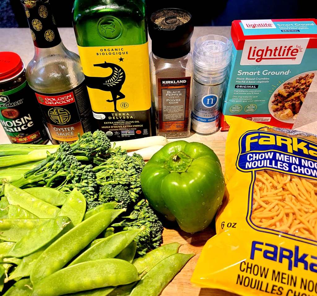 Being forever diligent, I set out to recreate this recipe with ingredients purchased at my local grocery store. I did make some minor changes. First off, I included snowpeas. Who doesn’t LOVE snowpeas?! I also did not add any salt and reduced both sauces to 1/4 of the amount recommended. I had hoisin and oyster sauces in my fridge (a jar of each lasts me forever) but still included them (proportionately) in the total costing. Finally, I replaced the Beyond Beef Patties with Lightlife Smart Ground. The Smart Ground was significantly cheaper (4.49 for 340 grams as opposed to 7.99 for 226 grams). Smart Ground also contains fewer calories and less fat (140 calories, 3 grams of fat for 114 grams as opposed to 270 calories and 20 grams of fat for the same amount). Both meat substitutes are equally good tasting. Win-win!