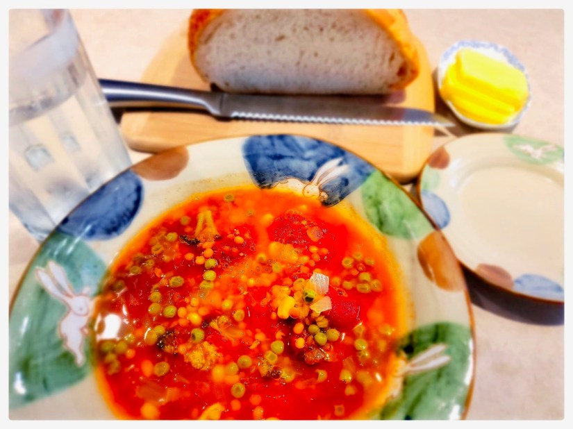 Got frozen veggies, lentils, tomatoes, onion and soup broth (or reasonable substitutes)? Then you’ve got yourself a delicious meal!