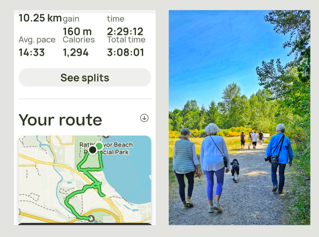 4. Rathtrevor Beach to Top Bridge (to join our walking group) and then back to Rathtrevor, 10 km.