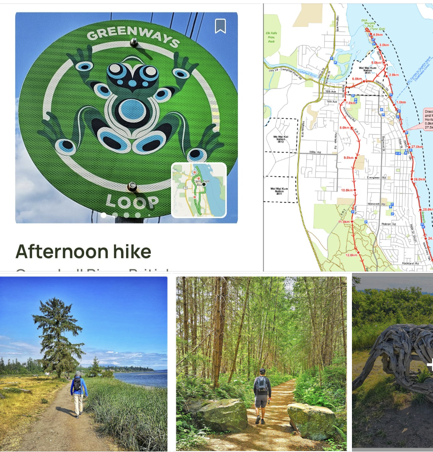 5. Greenway Loop (Campbell River), 22 km (it was supposed to be 28 km, but somehow we accidentally took a shortcut – honest)! This long but easy F.R.O.G. trail (forest, rivers, ocean, greenway) can be hiked or biked (and shortened if you like).