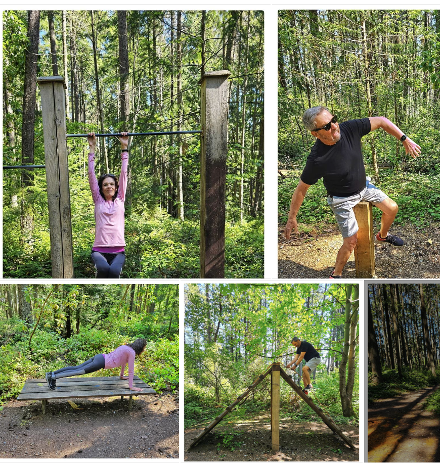 8. Beban Park (Nanaimo). 4km. Short, sweet with a bunch of cool exercise stations to explore, including pushups, sit-ups, rope course and pole climbing (the last activity was flatly declined by both Richard and me)!