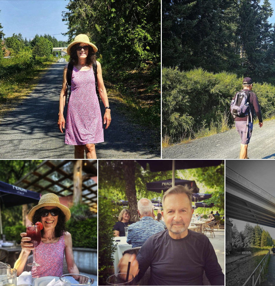 Making good on my Father’s Day gift to Richard, I put on my Camino hiking dress, and we walked from our home to Cuckoo’s Restaurant in Coombs. It was 20 km round trip and a delightful way to spend a summer evening!
