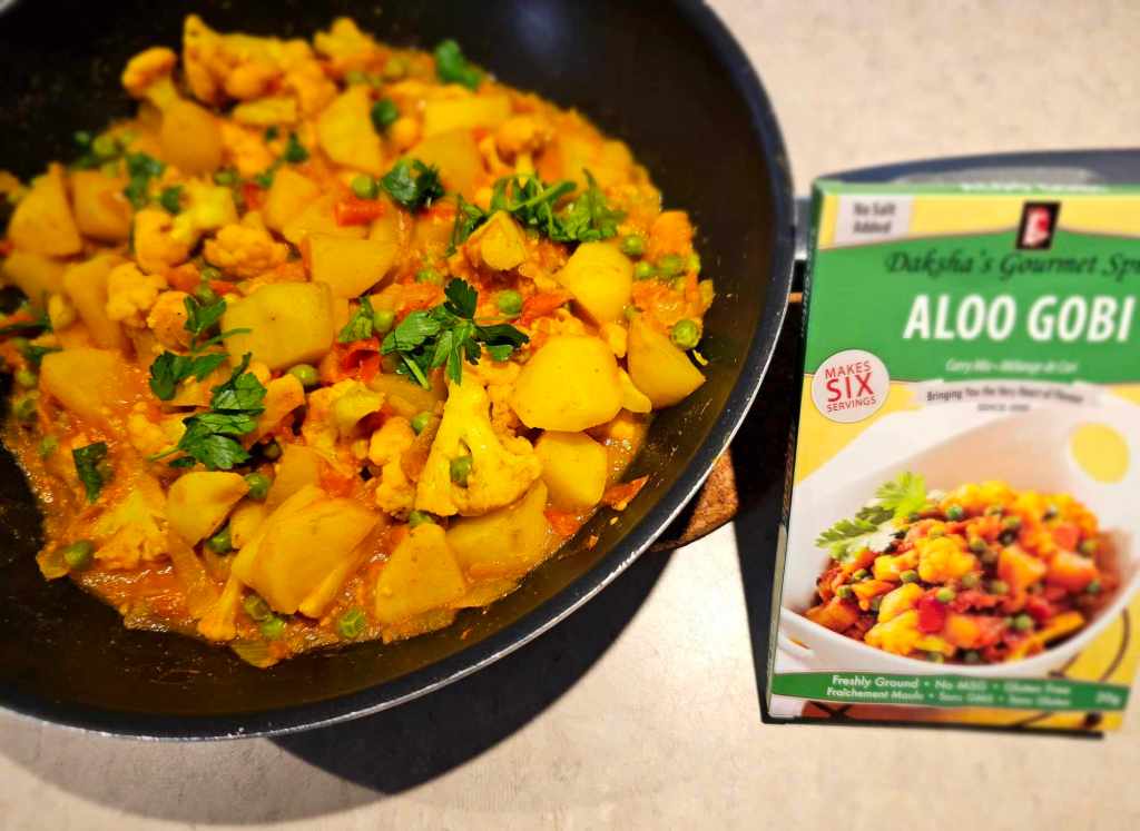 • For the Aloo Gobi and Chana Masala, we used a local spice kit from Daksha’s Gourmet Spices. Sadly, Daksha recently retired, so no longer accepts orders. Remaining spice kits are still available on Vancouver Island (Goats on the Roof, Salish Sea Market) or via some sellers online.