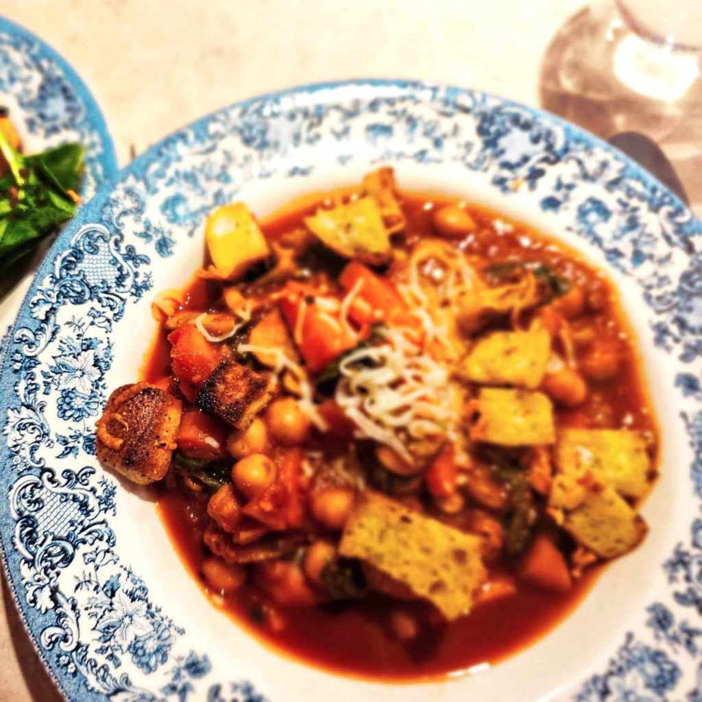 6. A go-to vegetarian dish is tortellini soup. There’s a pot in the fridge as we speak. It’s loaded with red kidney beans, spinach & tortellini, of course. I use home-processed tomatoes in the recipe. Another favorite: tikka masala naan pizza using naan bread, commercial tikka masala sauce, chickpeas, spinach & feta cheese. I’ve recently been introduced to peanut butter spinach soup with sweet potatoes. The recipes are all available on-line. A recipe is merely a suggestion so see where it takes you.